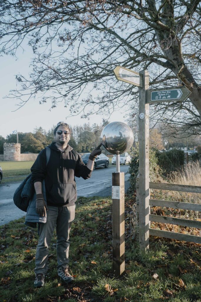 We took the bus from Edinburgh to Aberlady and started our walk where we left off on our Prestonpans to Aberlady Walk – outside Aberlady Inn. The day’s plan is to do the Aberlady to North Berwick walk and thus complete the eastern half of the John Muir Way. After completing this section, we will have walked the entire trail between Bo’ness and Dunbar. We bought some pastries at The Old Bakehouse Tearoom, where some grannies were selling the cutest handmade knitware for Christmas. We bought a pair of bright yellow booties shaped like a duck for a friend’s daughter, then headed towards the coast. If you’re looking for easy walks near Edinburgh that don’t require a car, this is an excellent choice. We walked from Aberlady eastwards towards North Berwick, leaving the quiet village behind as the path opened out across the wide sands and grassy dunes of Aberlady Bay. It was a bright, breezy day, and the walk felt exhilarating, with big skies, seabirds calling, and long views across the Firth of Forth. The route alternated between shoreline paths and open countryside, with the sea never far away.